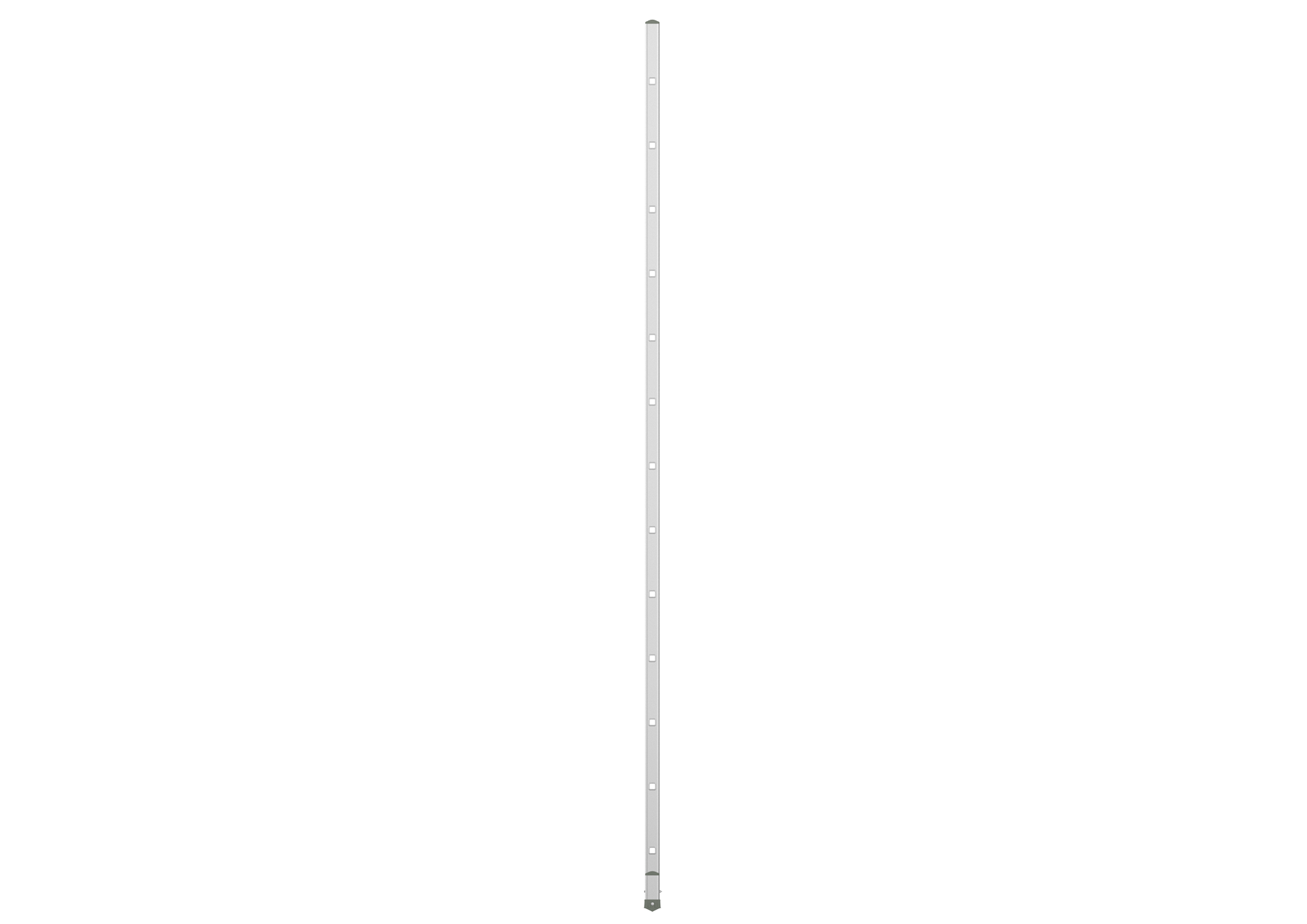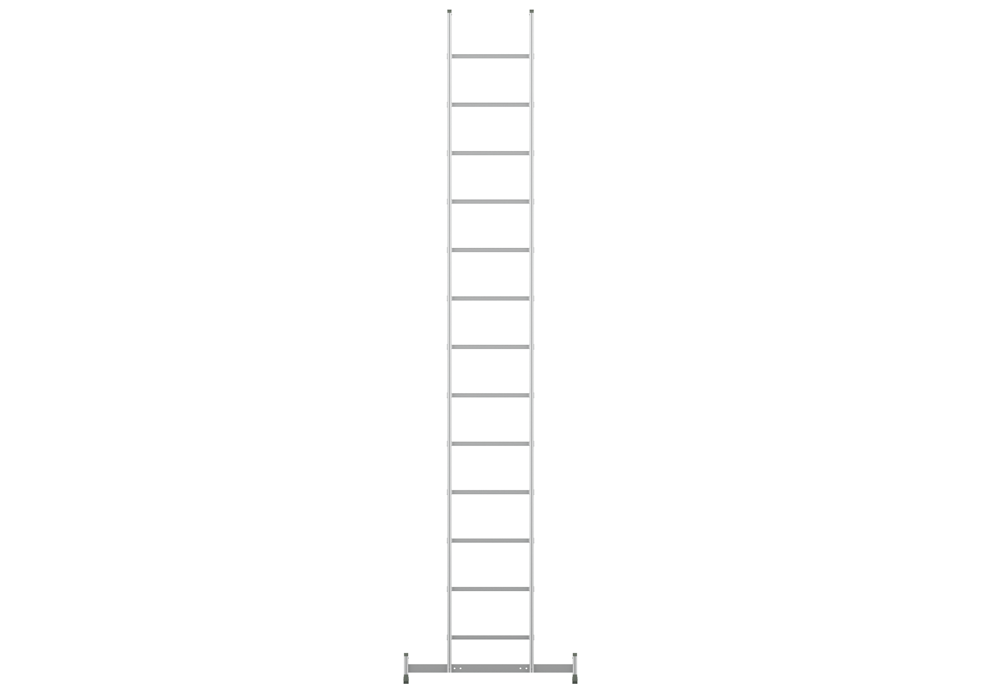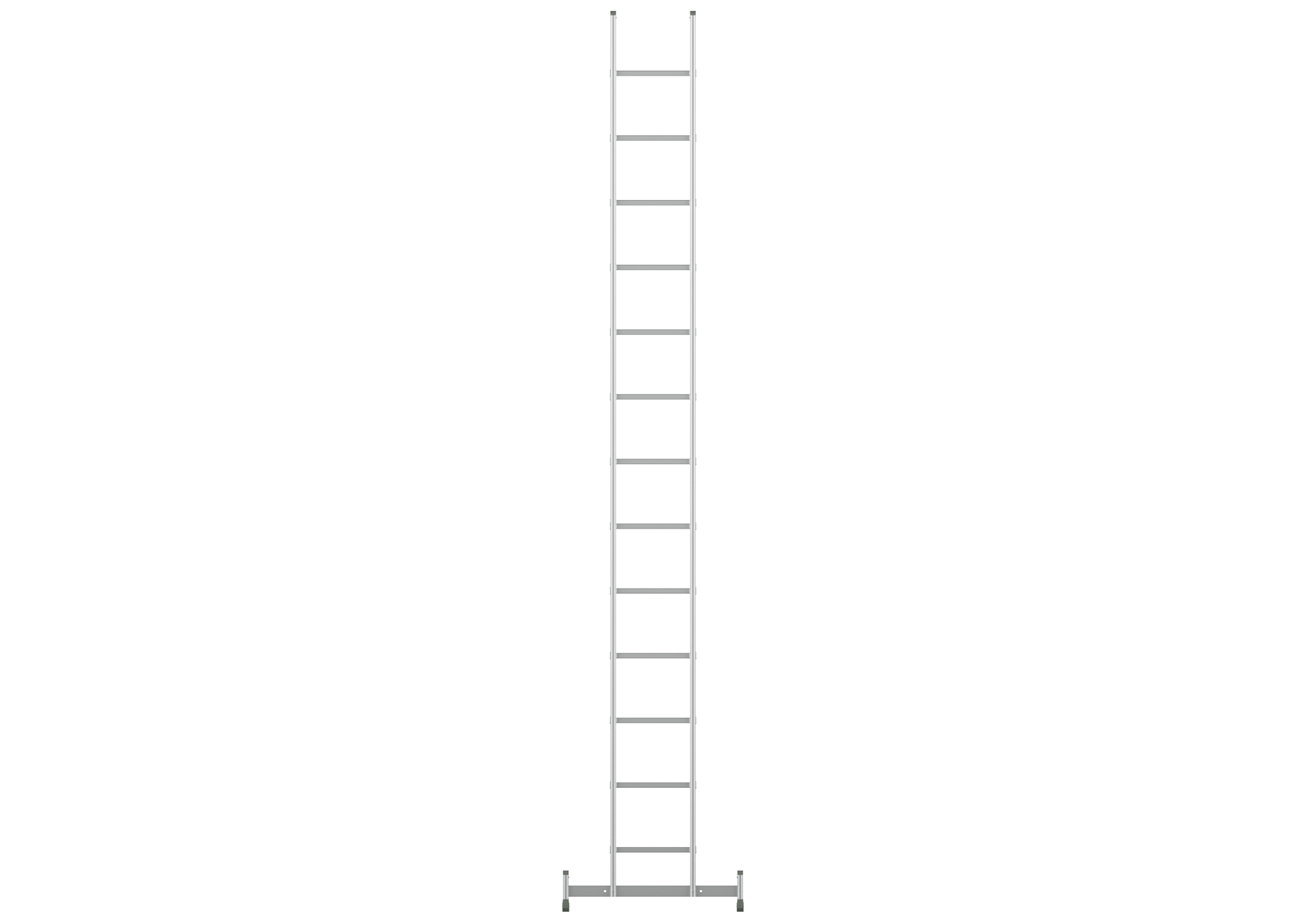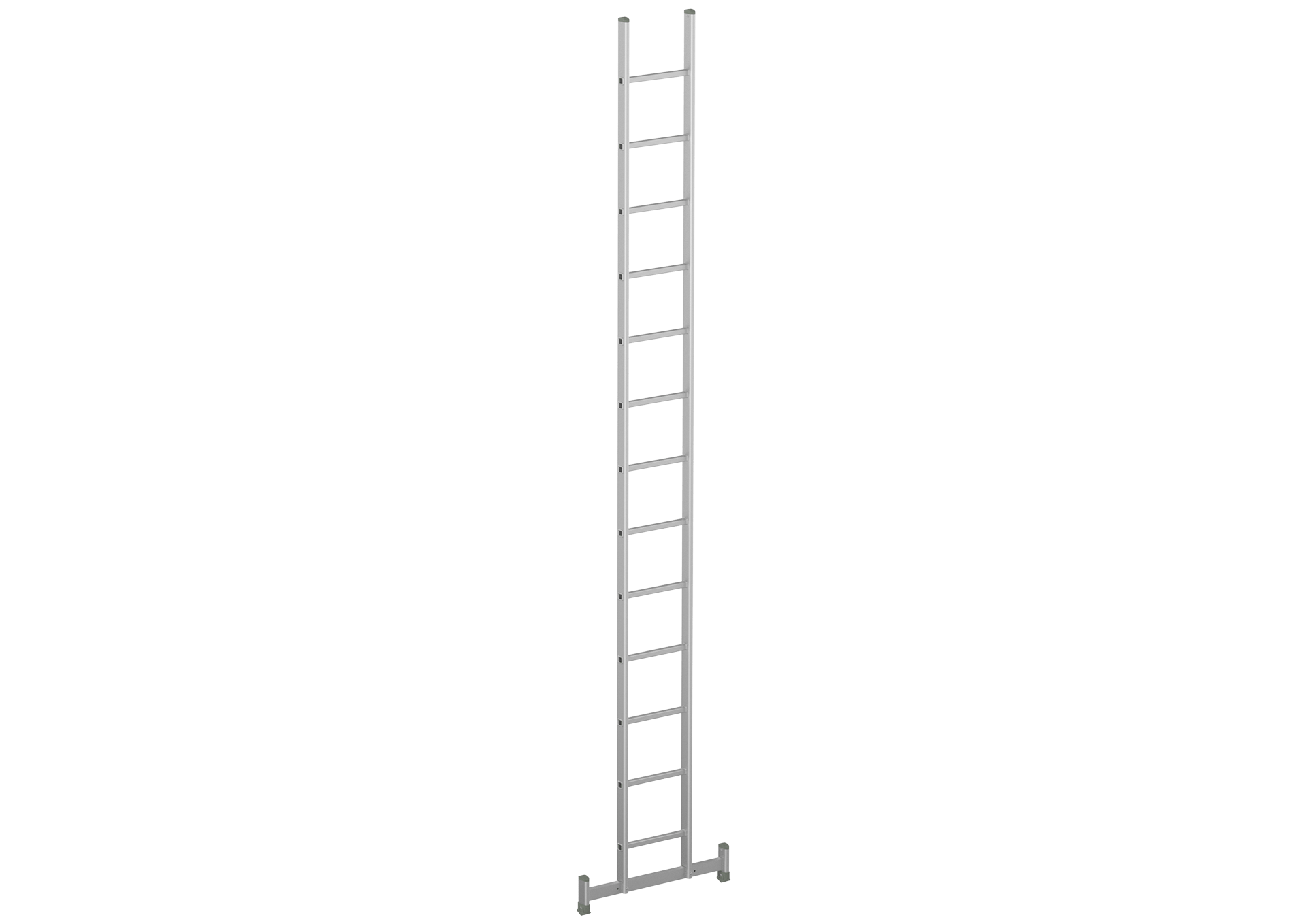 Single ladder, all aluminum – distance between rungs: 280 mm – rung section 25 x 25 mm – extruded profile – non-marking pads – available in two widths: 320 mm and 452 mm – models with 12 rungs and above supplied with an aluminum stabilizer equipped with pads.